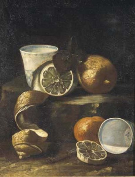 NATURA MORTA CON LIMONI E TAZZINE DI CERAMICA
