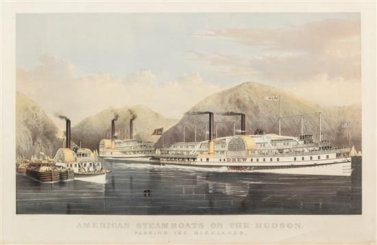 | American Steamboats on the Hudson, passing the Highlands | |