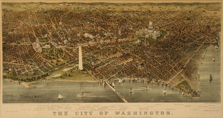 | The City of Washington: Bird's Eye View From The Potomac - Looking North (G. 1238; P. 3909) | |