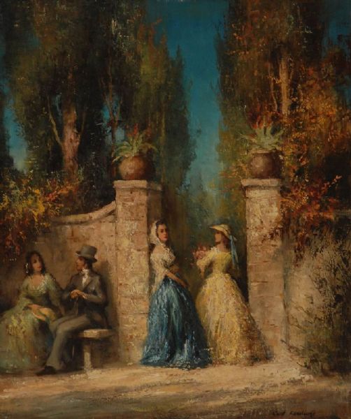 Elegante Gesellschaft an steinerner Pforte