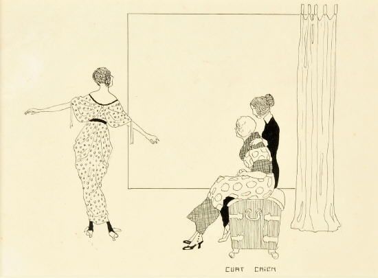 Eine Dame tanzt, andere Damen interessieren sich mehr für die Mode