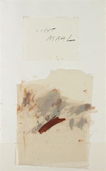 Watercolor pencil, crayon, wax paper, cellotape and paper collage on paper