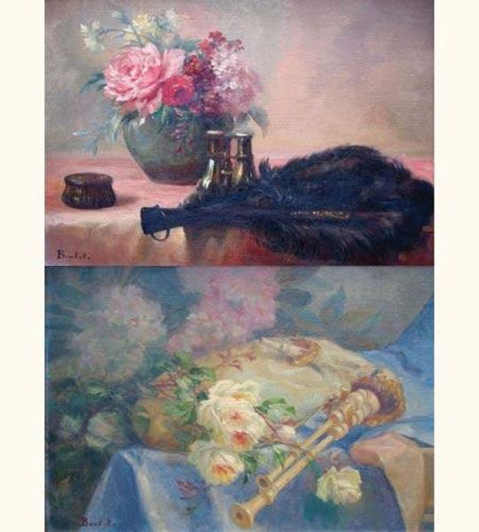 | 2 natures mortes aux fleurs et musique et aux fleurs et éventail, faisant pendant | |