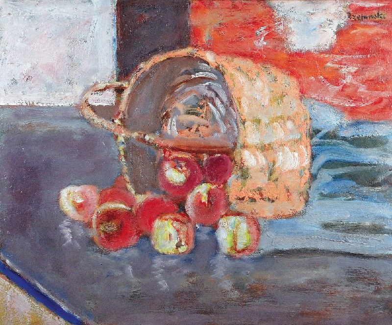 Martwa natura z koszykiem i jabłkami