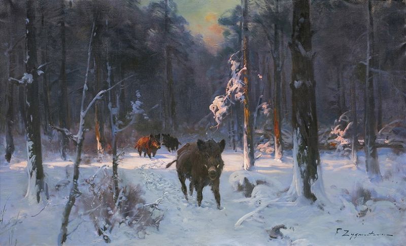 Boars in Winter Forest