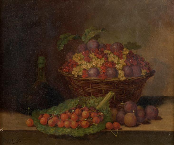 | Deux natures-mortes en pendant : Panier de groseilles et cerises et Panier de raisins et pêches. | |