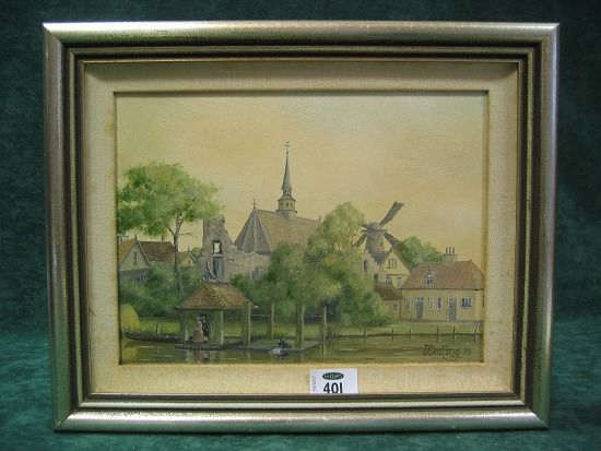 Dutch River Village Scene with Figures