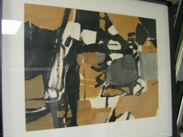 Abstract pair of mixed media collages in black, white and brown