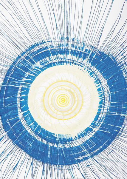 Ink and acrylic on paper.