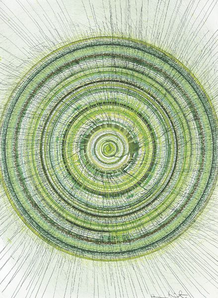 | Pastel acrylic ink, wax pastel, glitter, felt-tip pen and colored pencil on paper | |