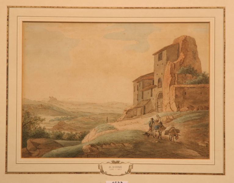 Uitgestrekt heuvellandschap met figuren bij een huis