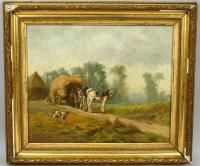 horse-drawn haycart with dog