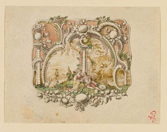 Sketch for a porcelain box with sheperd scene.