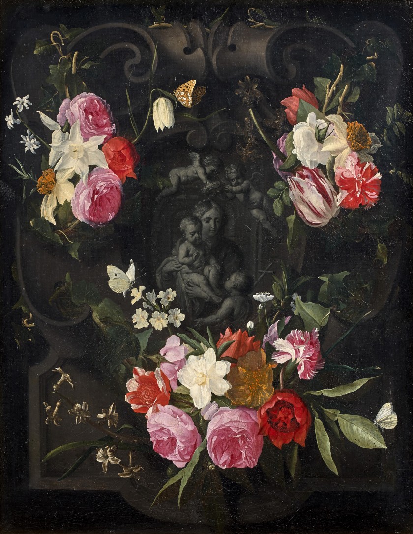 La Vierge à l'Enfant dans un encadrement de fleurs