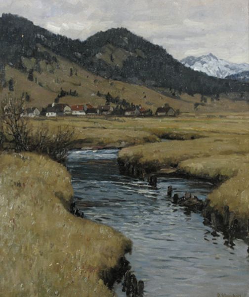 Vorgebirgslandschaft mit Bachlauf im Herbst