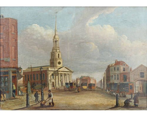 | A pair of London views: Shoreditch Church; and Blackfriars Bridge | |