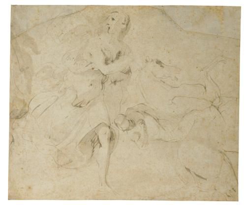| SCHIZZI DI FIGURE: DONNA CHE FUGGE VERSO DESTRA E FIGURA A CAVALLO | |
