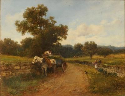 | At Little Malvern, a horse drawn wagon and figures on a country lane | |
