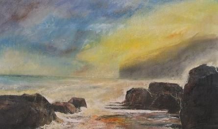 | Sunrise at Reighton Gap sun rising onto Filey Bay over Bempton Cliffs luring sea mist away | |