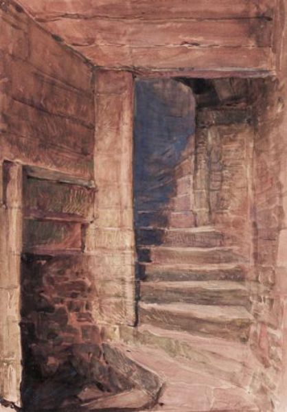 A STAIRWELL AT HADDON HALL, DERBYSHIRE