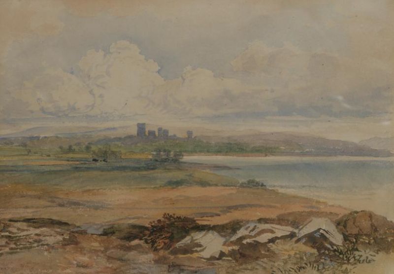 Distant view of a Welsh Castle, possibly Criccieth