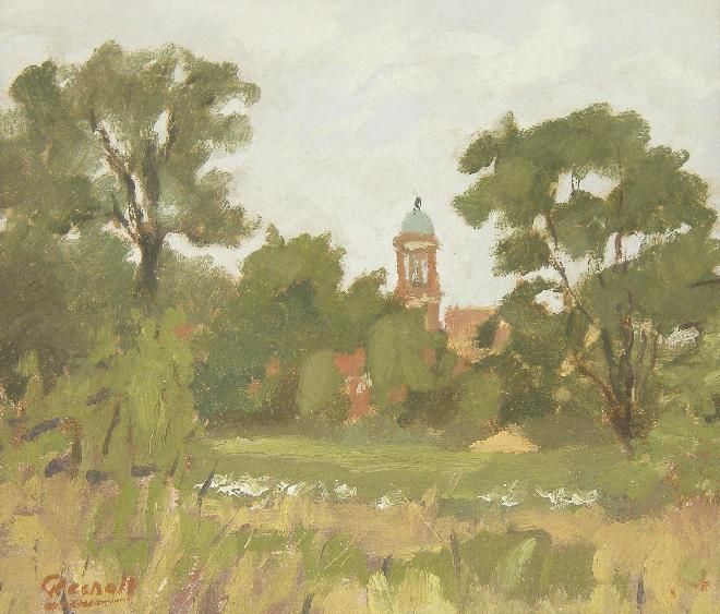 study of a building through trees