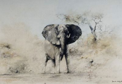 a bull elephant in a landscape