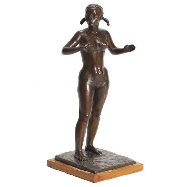 standing female nude with pigtails
