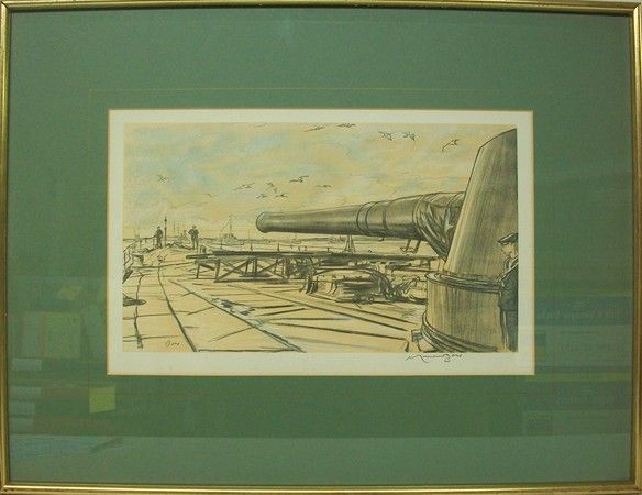 A gun turret of HMS Repulse, Firth of Forth, March 1917