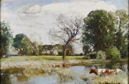 A RIVER LANDSCAPE WITH CATTLE WATERING