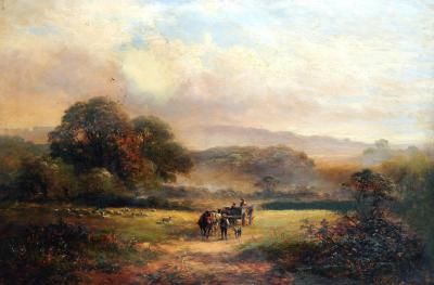 Rural Scene with Figures and Horse and Cart in the Foreground