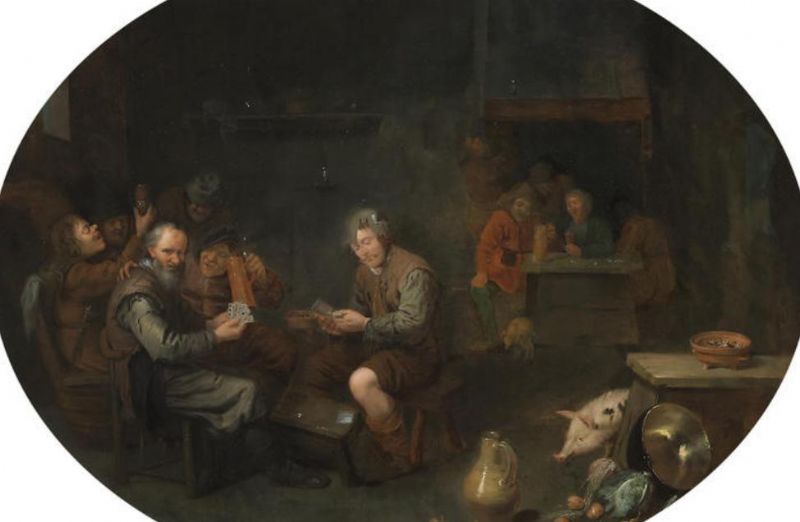 A tavern interior with men playing cards