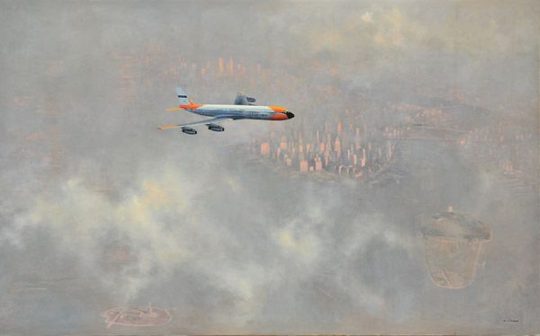 Air Force One in the clouds above New York