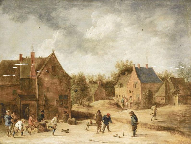 A VILLAGE SCENE WITH PEASANTS PLAYING KEGELEN