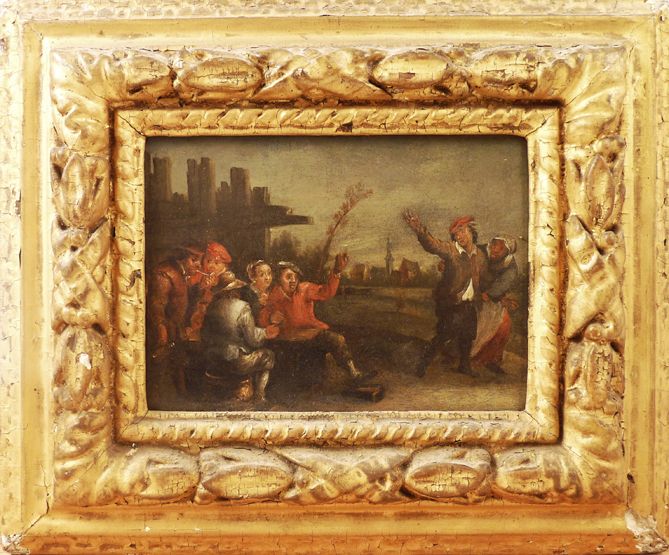 PEASANTS CAROUSING OUTSIDE A TAVERN
