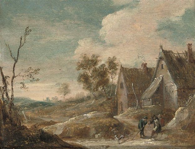 A village landscape with peasants conversing