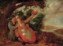 COUPE DE BUVEURS ASSIS SOUS UN ARBRE