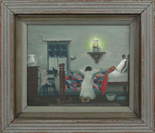 interior scene of a boy praying