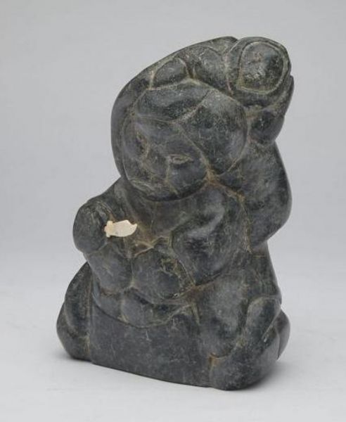MOTHER PREPARING A SKIN WITH CHILD IN AMAUT