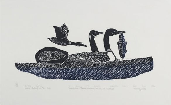 LOONS FEEDING IN THE LAKE