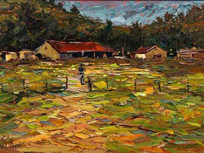 Farm Landscape with Cyclist