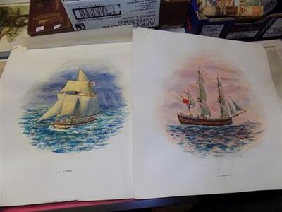 Dennis Adams (2 works), HMS Endeavour and HMS Mermaid, sheet size 45 x 45cm, each signed lower right | |