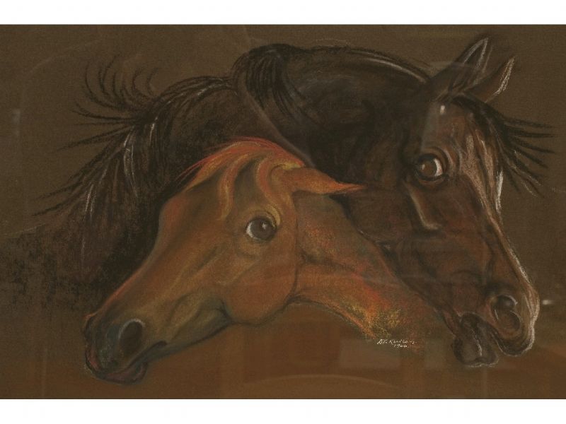 BAY MARE COMFORTING A FOAL