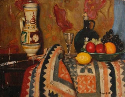 Still life with patterned cloth