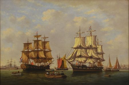 THREE MASTED VESSELS; ROWING BOATS AND FISHING SMACKS