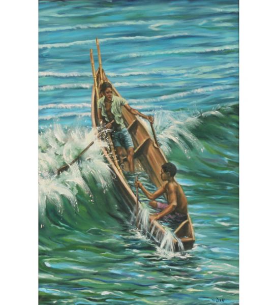 Two Men in a Dugout Canoe