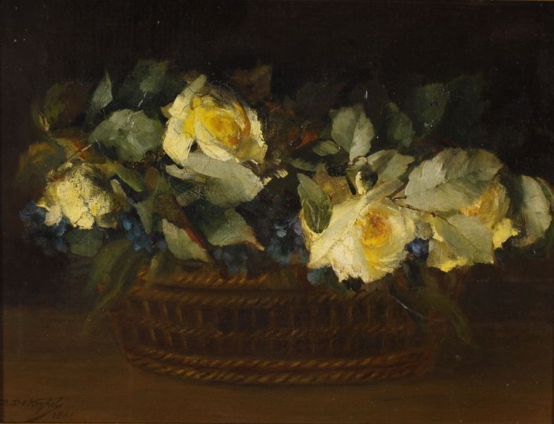 Rozen in een rieten mand.