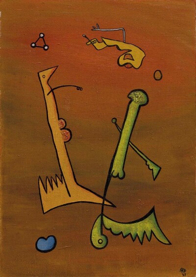 signé des initiales et daté 'DM. 47' (en bas à droite); signé de nouveau, daté, titré et numéroté 'Desmond Morris DM 1947\21 THE DEPARTURE' (au dos)