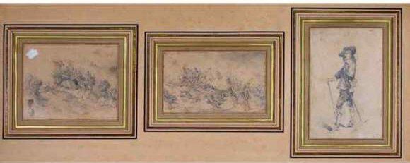 Portrait de Charles 1er d'Angleterre et Deux scènes de bataille