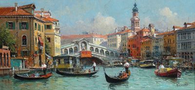 Canal in Venice with a View of the Rialto Bridge